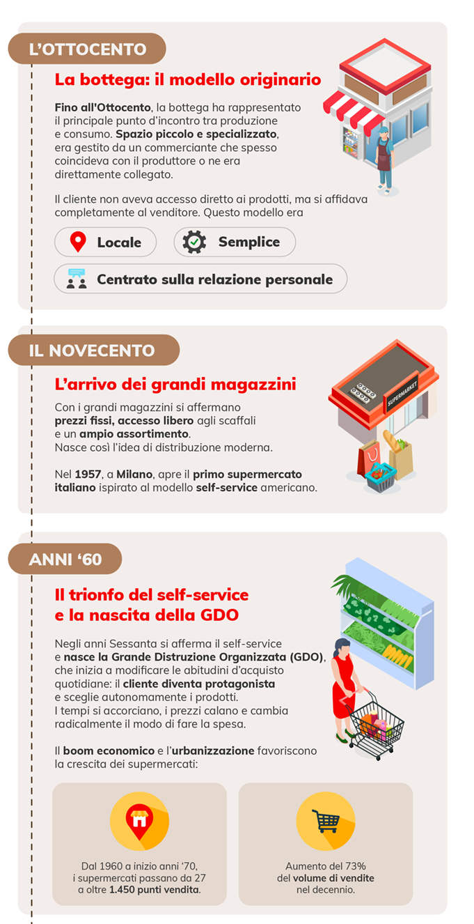 Bottega, GDO ed e-commerce: 60 anni di spesa in Italia