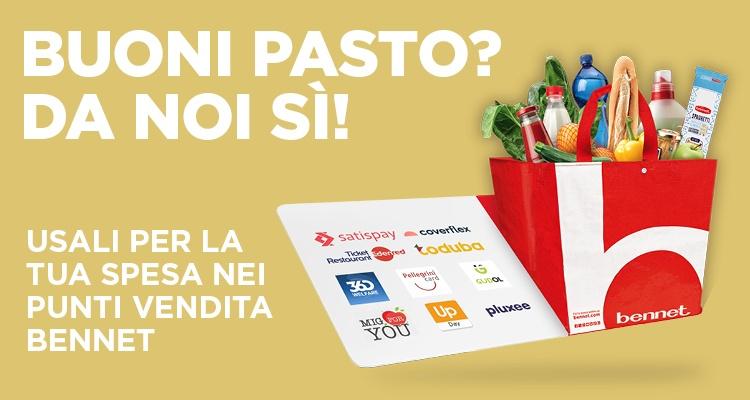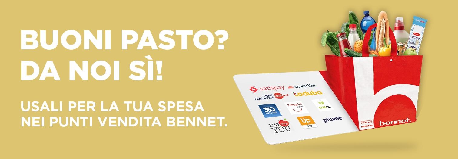 - I buoni pasto sono validi solo per gli acquisti effettuati nei negozi fisici Bennet