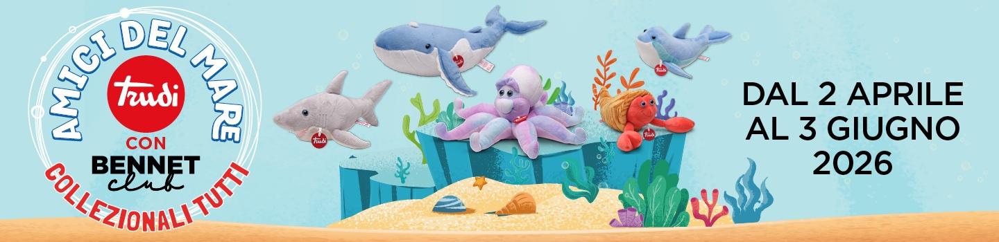 Bennet Club presenta gli Amici del Mare di Trudi, una collezione di morbidi personaggi che regalano ai più piccoli momenti di gioco, affetto e fantasia da condividere ogni giorno. Teneri, curati nei dettagli e tutti da collezionare, questi amici speciali trasformano ogni premio in un piccolo momento di felicità per tutta la famiglia. Raccogli i punti e scegli il tuo Amico del Mare di Trudi entro il 3 giugno.