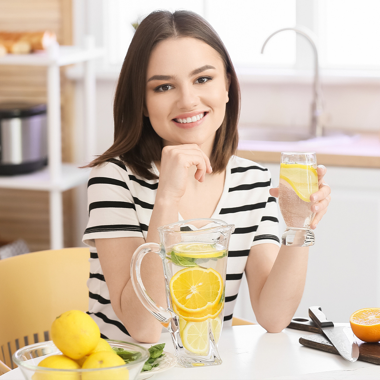 Lava bene il limone e il cetriolo, tagliali a fette sottili e mettili in una caraffa con l’acqua e le foglie di menta. Lascia in infusione per almeno un’ora in frigo. Aggiungi ghiaccio prima di servire e otterrai una bevanda rinfrescante leggera e detox!
