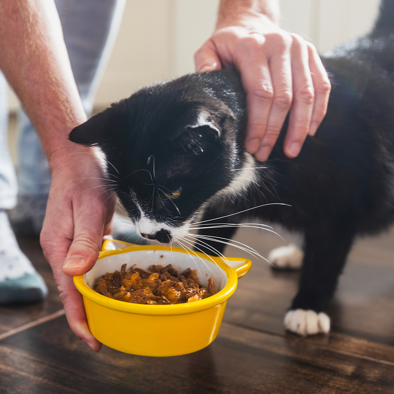 Il cibo umido per gatti è composto in gran parte da acqua (fino all’80%) ed è disponibile in formati come bustine, lattine o vaschette.