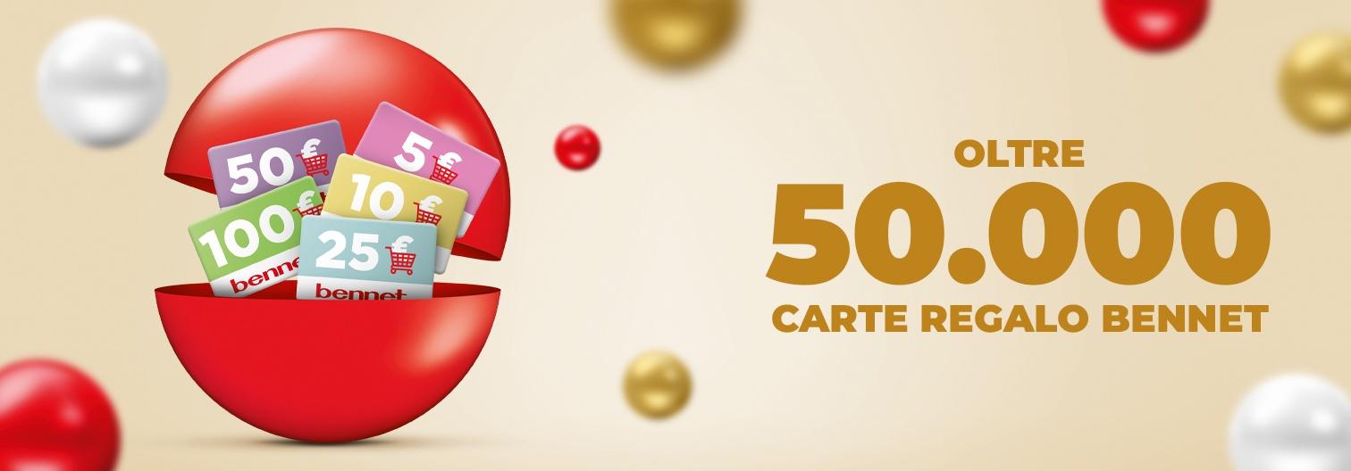 50.200 Carte Regalo Bennet del valore di 5€, 10€, 25€, 50€ o 100€.