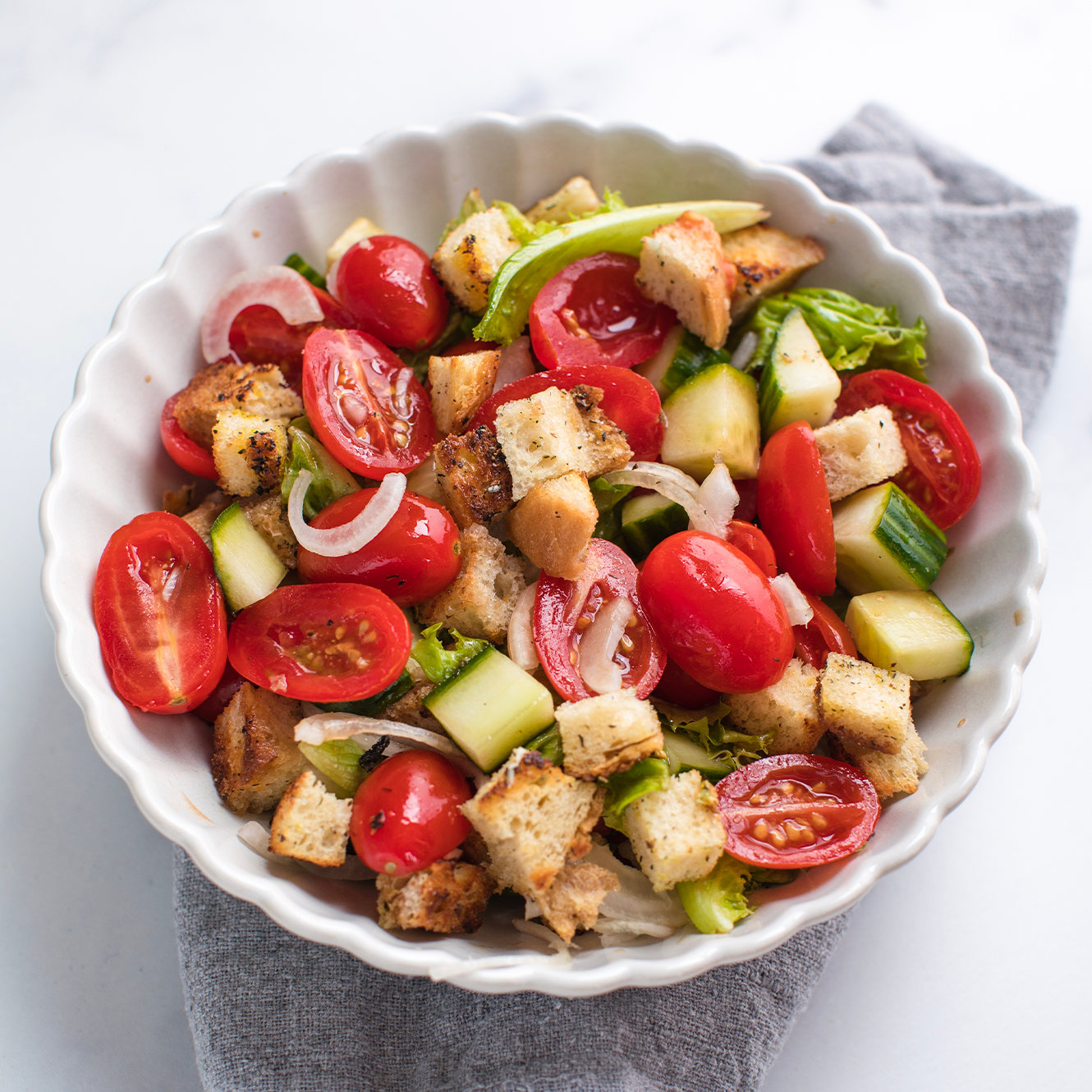 La panzanella è l’insalata di pane più amata dell’Italia centrale: un piatto contadino nato per recuperare il pane raffermo e trasformarlo in un pranzo estivo ricco di profumi. Quando si parla della ricetta tradizionale della panzanella, ci si riferisce soprattutto alla Toscana, ma ottime versioni si trovano anche in Umbria e nel Lazio.